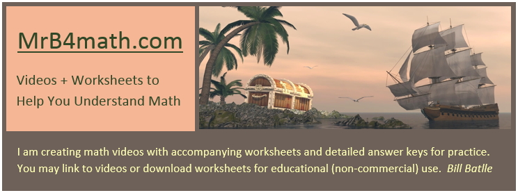 | This is an introduction to the meaning of exponents, and how to simplify or evaluate numbers with exponents. Also, I cover powers of ten and I introduce the zero exponent. Lastly, I briefly mention why zero exponent values always go to 1. | You may want to print the Sheets Used in Video to take notes while watching the video. The Exponents & Powers of 10 worksheet has three columns of similar problems for practice. You should work one column, check and understand any mistakes, and then pause some minutes or hours before attempting the next column. Such breaks help to move knowledge from your short-term memory to your long-term memory. |